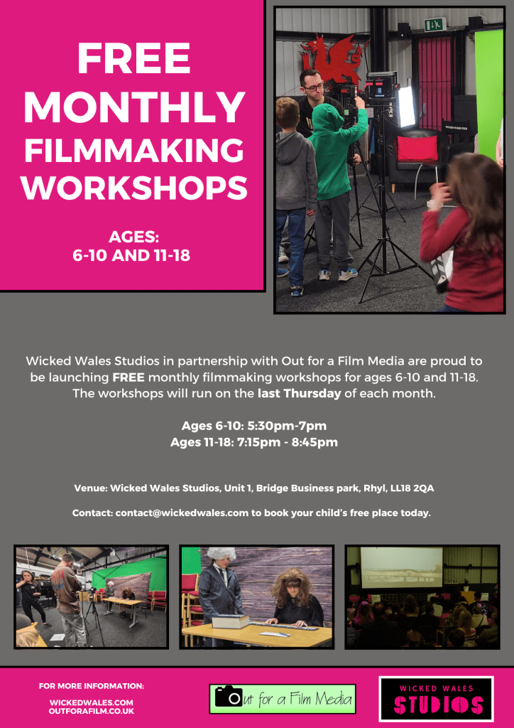We run weekly film workshops in Llanddulas, Prestatyn and Llandudno. The sessions are aimed at a broad age range from 6-18 years old.